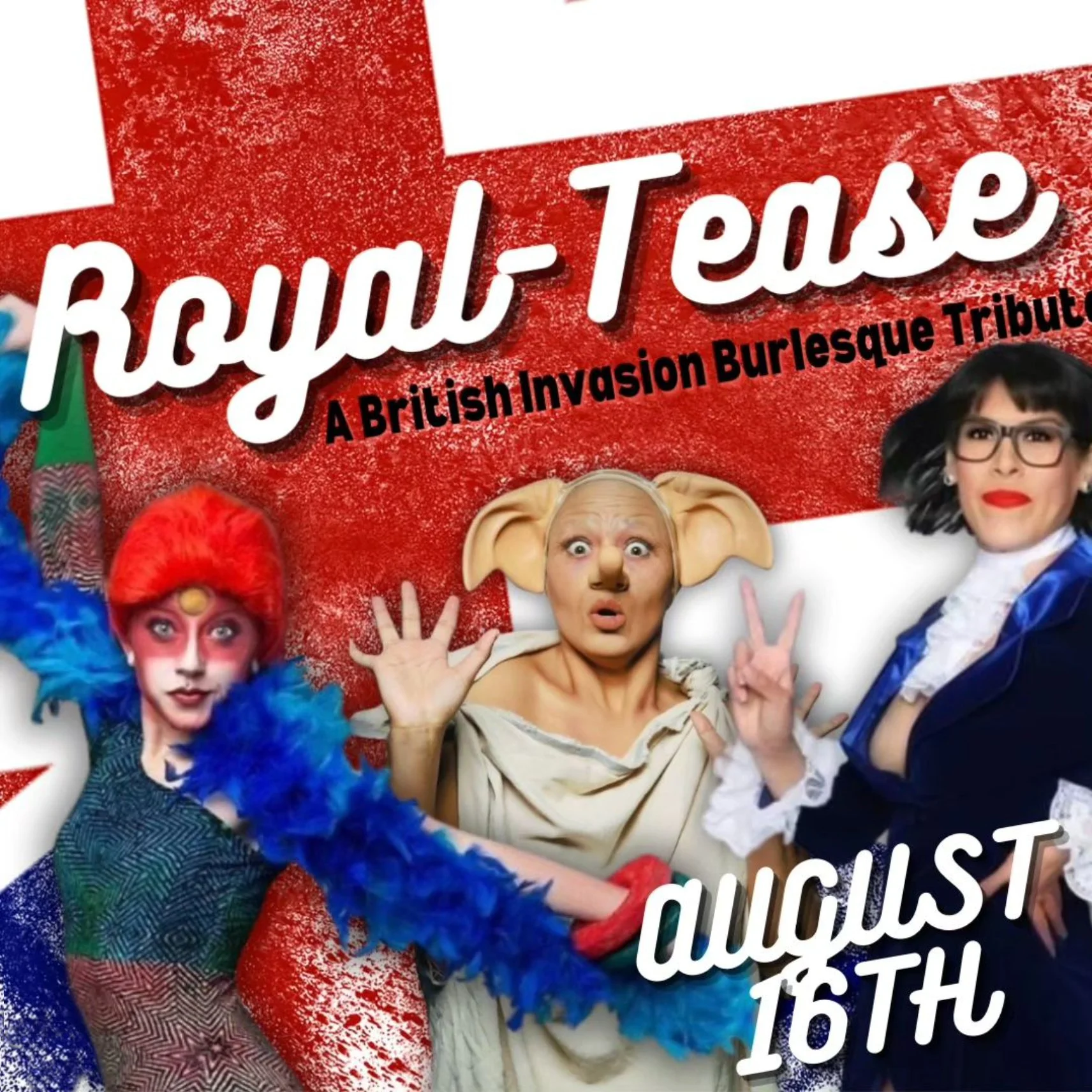 Get ready for a night of royal decadence and British charm with Royal-Teaseβa burlesque tribute to the iconic figures of the United Kingdom! From the regal presence of The Queen of England to the revolutionary sounds of The Beatles and the pop phenomenon of The Spice Girls, this show has it all.